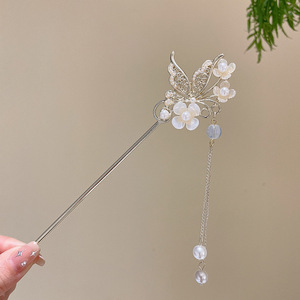 96#白玉兰花双花流苏发簪-金色 (袋装).