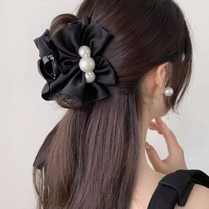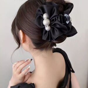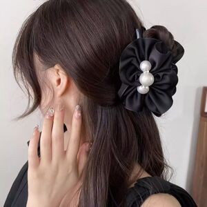 フレンチパールプリーツ花びらボールクリップ、シャーククリップ、女性らしいポニーテールヘアクリップ、ヘップバーン風ハーフアップヘアクリップ