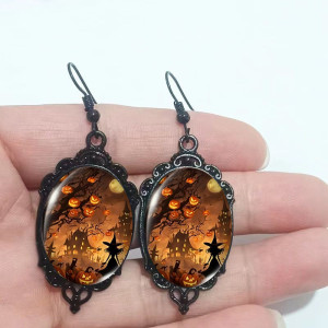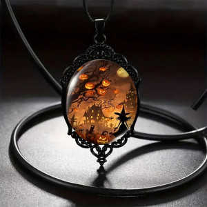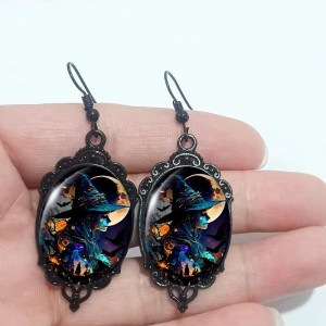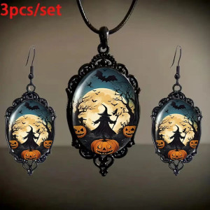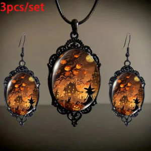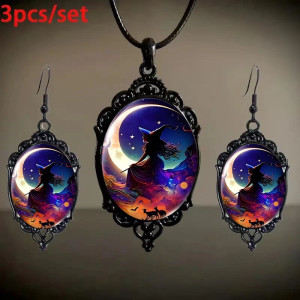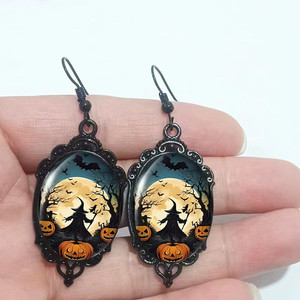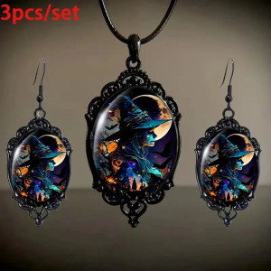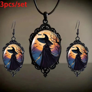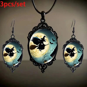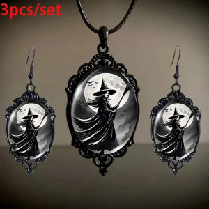 跨境 外贸 亚马逊 哥特巫女黑色边框吊坠项链 耳环饰品 厂家直销