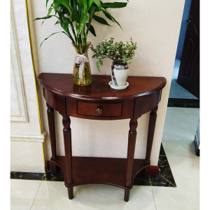欧式实木玄关桌隔断柜美式玄关柜长条桌靠墙走廊半圆玄关台新