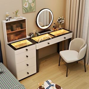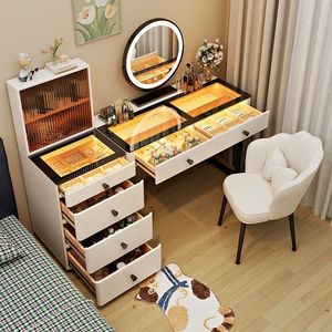 卧室奶油风全实木氛围灯高级梳妆台现代简约斗柜收纳一体化妆台