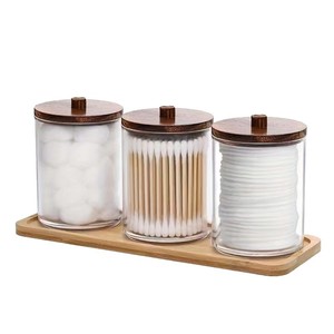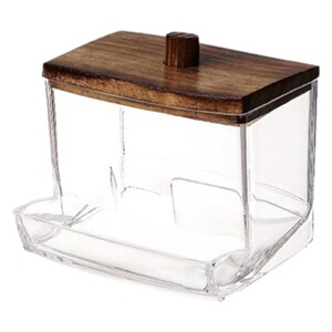 桌面方形圆杯化妆棉棉签棉球防水收纳塑料盒多种组合黑木盖