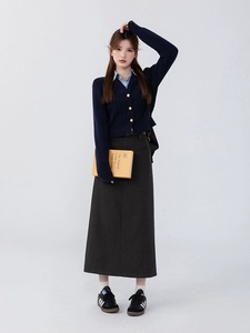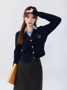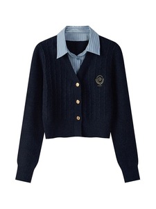 ポロ襟偽ツーピースニットセーター女性のための 2025 秋と冬の新しい英国カレッジスタイルのニットセータートップ