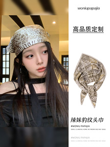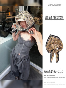 Y2K ミレニアムスタイルヒョウ柄ヘッドスカーフ女性ストリートホットガールターバンヒップホップ音楽祭ヘアバンドスカーフ