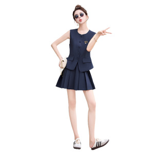 Xiaoxiangfeng スーツ女性の夏のファッション見栄えの良いファッションカレッジスタイルノースリーブベストプリーツスカート 2 点セット