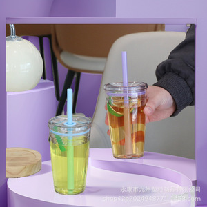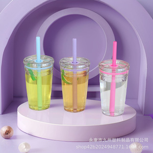 2025年クロスボーダー新モデル450mlキャンディーカラーのトリタン製ドリンクカップ、ミルクティーカップ、マルチカラーのインターネットセレブ透明ストローカップ