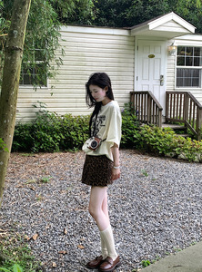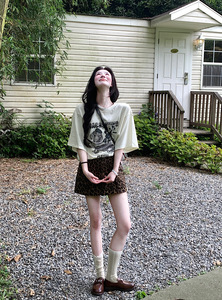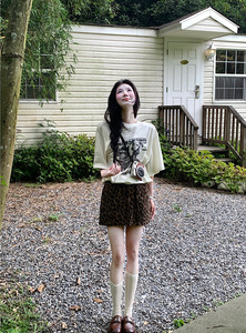綿漫画プリント半袖 Tシャツ女性のための 2025 夏の新しい韓国デザインルーズラウンドネックトップトレンディなイン