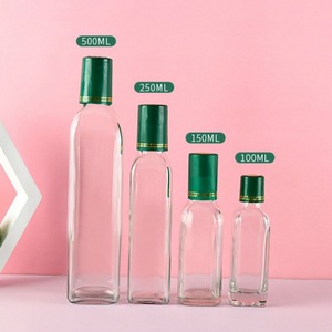 スポット卸売 500 ミリリットル正方形透明ガラスオリーブオイルボトル密封椿油ボトルオイルとビネガー詰め替え空ボトル