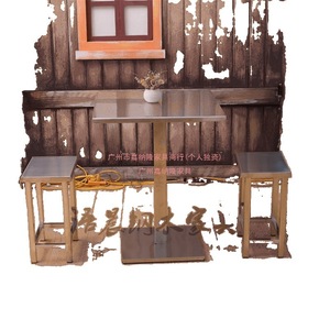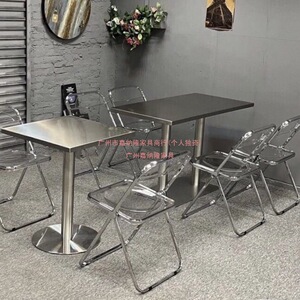 咖啡店不锈钢长方桌户外网红餐厅工业风餐桌椅子工业风桌椅