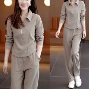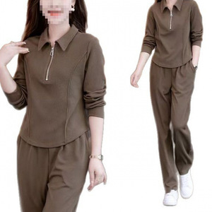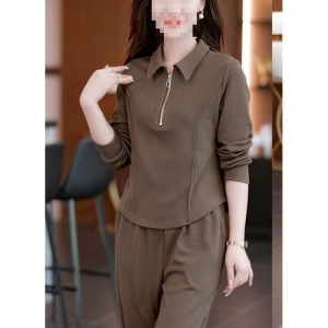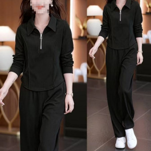 半拉链设计感时尚长袖运动套装女早秋装洋气减龄显瘦小个子两件套