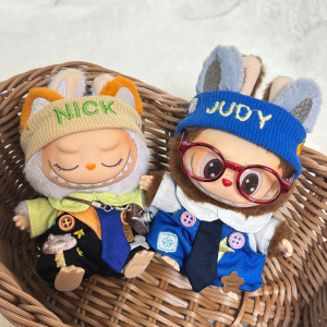 拉布布一二三代通用娃衣坐坐派对labubu着替衣服朱迪警官可爱尼克
