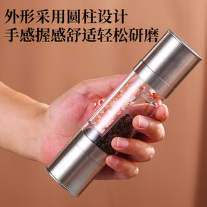 Amazon 双頭手動グラインダーキッチンステンレス鋼ブラックペッパー海塩グラインダーガラス調味料ボトル