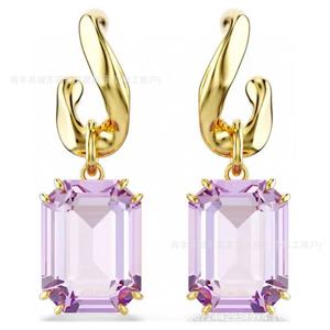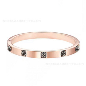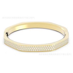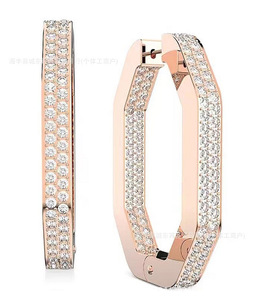 八角形手镯女水晶个性切割穿孔大小圈情闺蜜侣耳环玫瑰金礼物