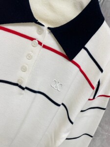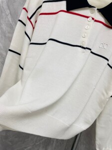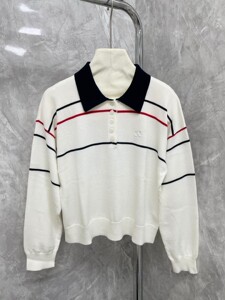 高定25早秋新款凯旋门撞色条纹Polo衫休闲宽松长袖羊毛针织上衣女