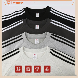哇噢定制727#24新款450克奥利绒三条杠圆领卫衣四色长袖休闲百搭