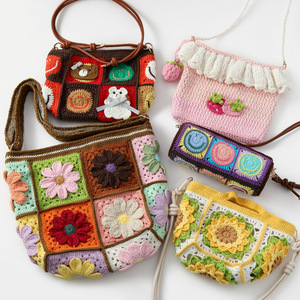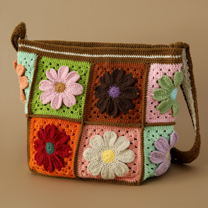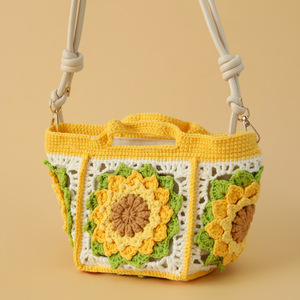 手作りフラワーニットコントラストカラーバッグシェフィールドラインインターネットセレブクロスボディかぎ針編みバッググサンドルフラワーバッグひまわりニットバックパック