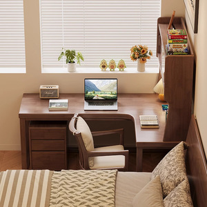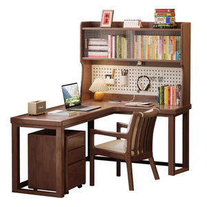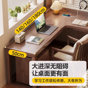 加厚全实木转角书桌书柜一体卧室拐角电脑办公桌洞洞板书架带插座