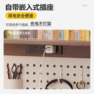【象牙白单桌】橡胶木实木 洞洞板 插座