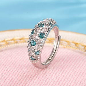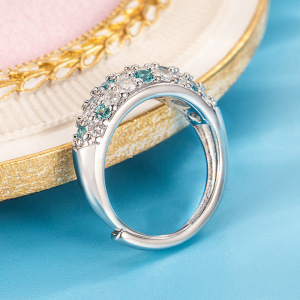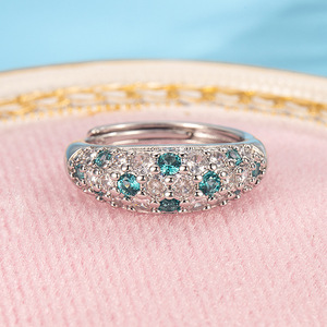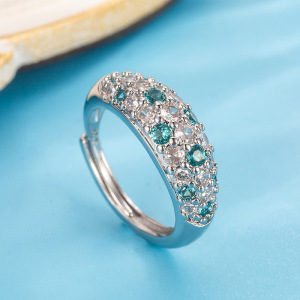 新しいミントグリーンフルダイヤモンドリング女性のニッチデザインライト高級ハイエンドフラッシュ絶妙なジルコン人差し指リング