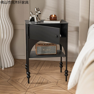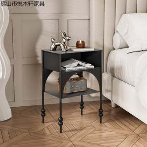 卧室床头柜小户型沙发边几家用新款简约黑色窄边柜复古个性置物架