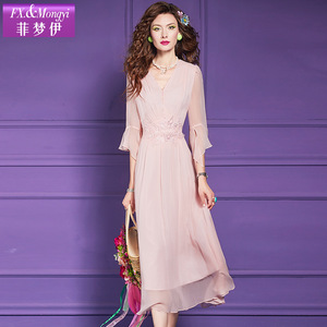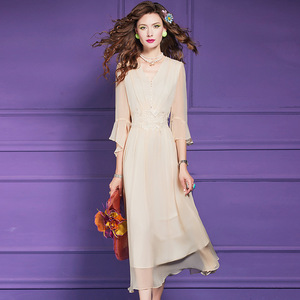 Feimengyi 100 マルベリーシルクドレス女性の夏のヘビービーズスパンコールヤングシルクスーパーフェアリーロングスカート
