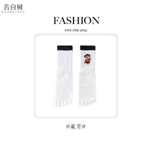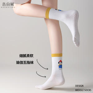 秋と冬の女性用靴下漫画かわいい接着剤滑り止めヨガソックス綿カラーマッチング女性のミッドふくらはぎスポーツ5本指ソックス快適