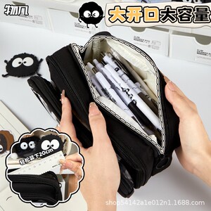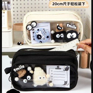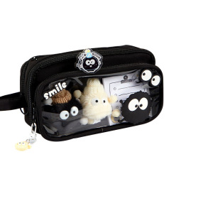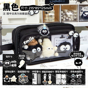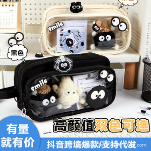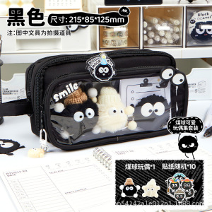 2025 新しい黒石炭ボール取り外し可能な鉛筆バッグ高価値透明学生鉛筆バッグインスタイル巨大なペンバッグ