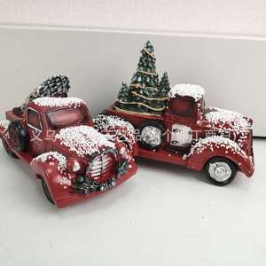 跨境圣诞节卡丁车红色圣诞树拉货led灯闪烁圣诞摆件氛围树脂家居