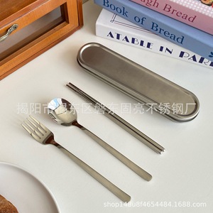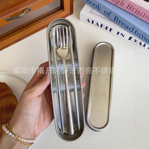 304不锈钢便携餐具套装学生勺叉筷不锈钢收纳盒户外便携餐具套装