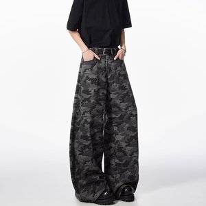 美式迷彩裤男款工装裤微喇牛仔裤阔腿复古春夏新款宽松直筒长裤子