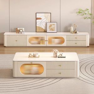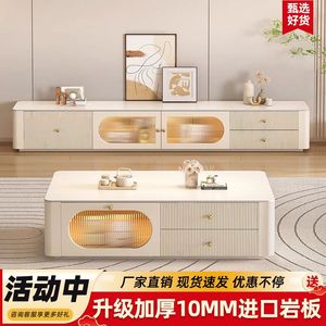 茶几电视柜组合奶油风纯实木客厅2025新款家用小户型岩板简约现代