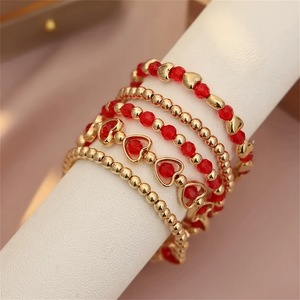 クロスボーダー多層レッドビーズラブCCBビーズブレスレットバレンタインデースタッカブルファッション多用途5点セットブレスレット