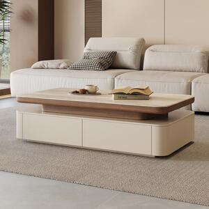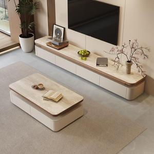 トラバーチン岩板コーヒーテーブルとテレビキャビネットの組み合わせセット、小さなアパート向け、中世スタイルの無垢材コーヒーテーブル、リビングルーム家具