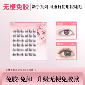 接着剤不要、茎なし、両端が尖ったひまわり型つけまつげ、ひまわり型接着剤不要の自己粘着つけまつげ、平らなまつげ