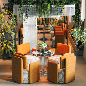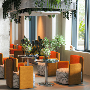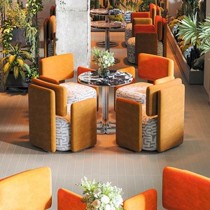 ラウンドテーブル80台+オレンジソファ4台
