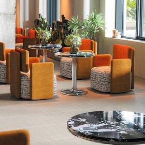 ラウンドテーブル60台+オレンジソファ2台