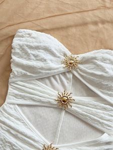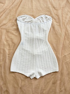2025 国境を越えたヨーロッパとアメリカの人気の白人女性の休暇白ニット テクスチャ メタリック テクスチャ スリム ジャンプスーツ