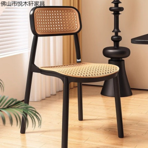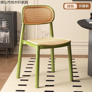 家用餐椅餐桌椅复古塑料藤编椅子藤条中古藤椅靠背椅透气户外凳子