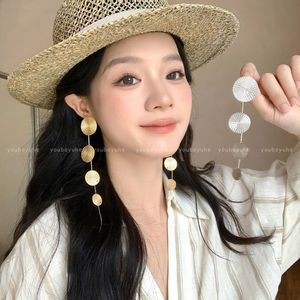 シルバー針メタルラウンドタッセルイヤリング、軽い高級感とハイエンドイヤリング、ヨーロッパとアメリカの誇張されたトレンディなイヤリング、ニッチなデザイン