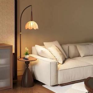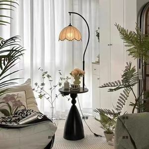 落地灯客厅沙发边几中古法式美式复古床头置物架一体卧室立式台灯