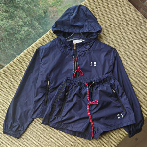 mm25Ss春夏新款学院风尼龙系列微标连帽外套加短裤套装