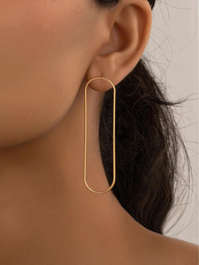 ヨーロッパとアメリカのクロスボーダー誇張された金属幾何学的な中空ロングイヤリングエレガントな女性のミニマリストスタイルの円形楕円形の女性のファッション