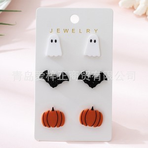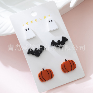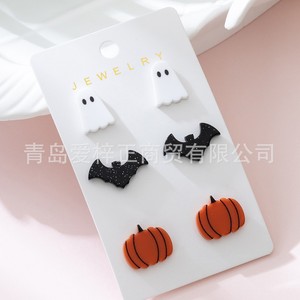 クロスボーダー新アクリル 3 ペア/セットハロウィンゴーストバットカボチャデザインレディースイヤリングセット