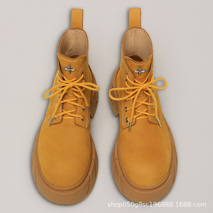 SK ファントムレザーバイクブーツレディースシューズカラーレトロラウンドトゥレースアップ厚底ハイトップマーティンブーツ 25 夏の新スタイル