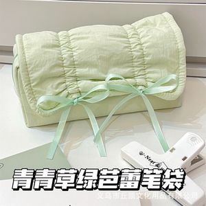 蝶結びバレエ風筆箱高価値インスタイルグリーングラスグリーンミルク文具箱女の子用2025新スタイル