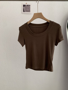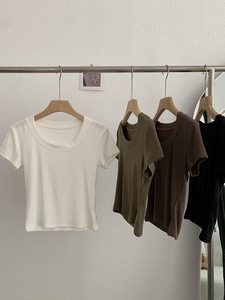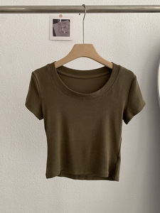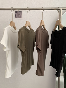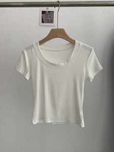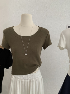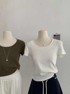 Ouma Lai 2025 夏の新韓国スタイルラウンドネックスリムフィットショート多用途半袖 T シャツトップス女性 4013