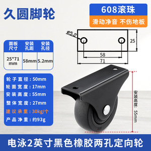 2英寸电泳黑色单轴承橡胶定向轮(螺丝需另拍)