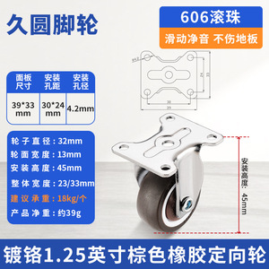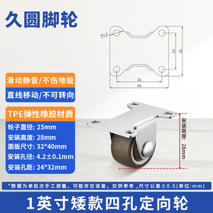 矮款1英寸镀铬单轴承平板橡胶定向轮(螺丝需另拍)