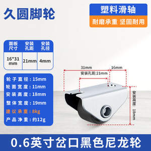 0.6英寸岔口孔位镀锌无轴承黑色PP定向轮(螺丝需另拍)