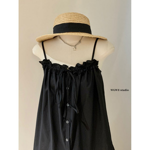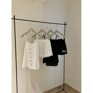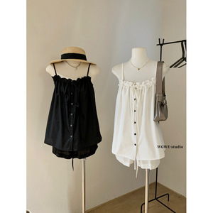 WGWE 时尚套装法式气质花边吊带上衣+宽松休闲阔腿裤套装女W5984